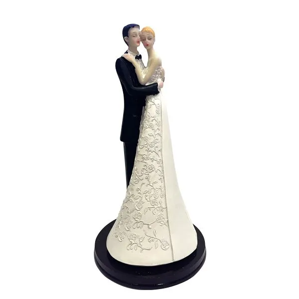 Figura novios boda resina de 21 cm de alto, ideal para decoraciones románticas y elegantes.